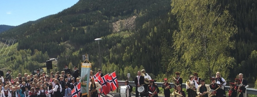 Kl. 12:30 Oppstilling Uvdal skole. Vi synger første vers av «Ja, vi elsker»