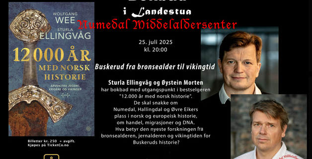 Bokbadet tar utgangspunkt i bestselgeren «12 000 år med norsk historie». De skal snakke om Numedal, Hallingdal og Øvre Eikers plass i norsk og europeisk historie, om handel, migrasjoner og DNA. Hva betyr den nyeste forskningen fra bronsealderen, jernalderen og vikingtiden for Buskeruds historie?
