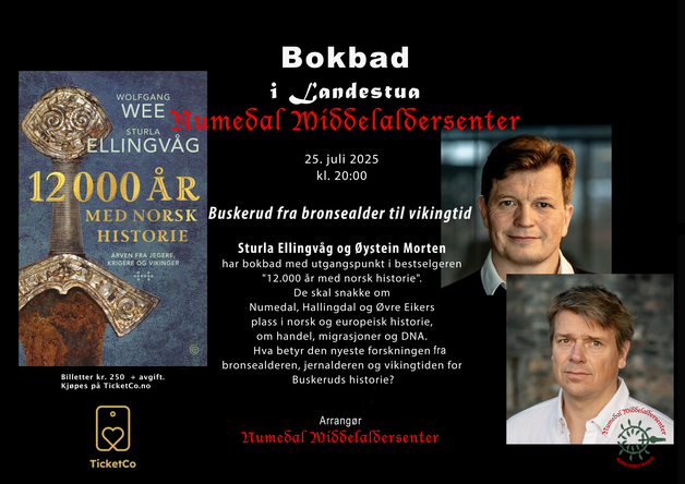 Bokbadet tar utgangspunkt i bestselgeren "12 000 år med norsk historie". De skal snakke om Numedal, Hallingdal og Øvre Eikers plass i norsk og europeisk historie, om handel, migrasjoner og DNA. Hva betyr den nyeste forskningen fra bronsealderen, jernalderen og vikingtiden for Buskeruds historie? Inngang kr. 280. Forhåndssalg av billetter på ticketco.no Sted: Landestua i Numedal […] |