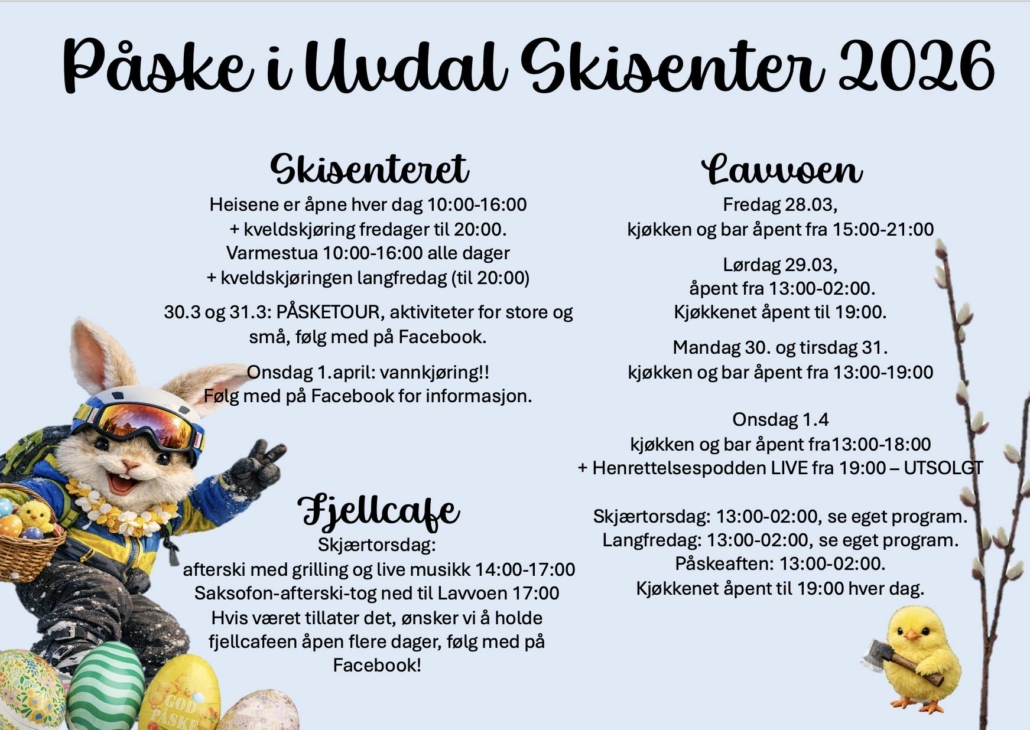Ønsker du å kjøpe årskort eller overnatting sjekk ut deres nettside: Uvdal Skisenter